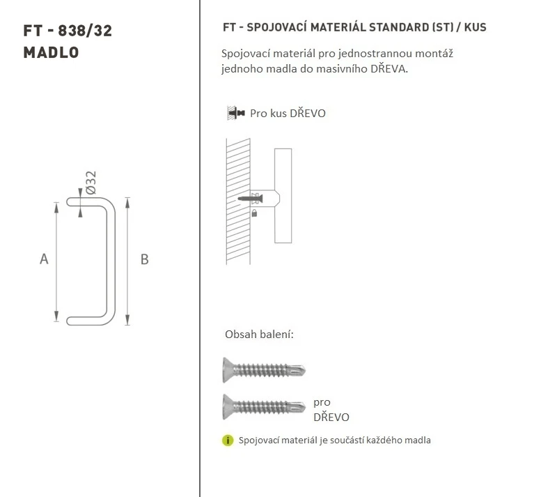 Madlo na dveře je vyrobeno z vysoce kvalitní nerezavějící oceli, známé jako nerez a je povrchově upravené. Profil madla je 32 mm. Součástí madla jsou vruty 6 x 45 mm.