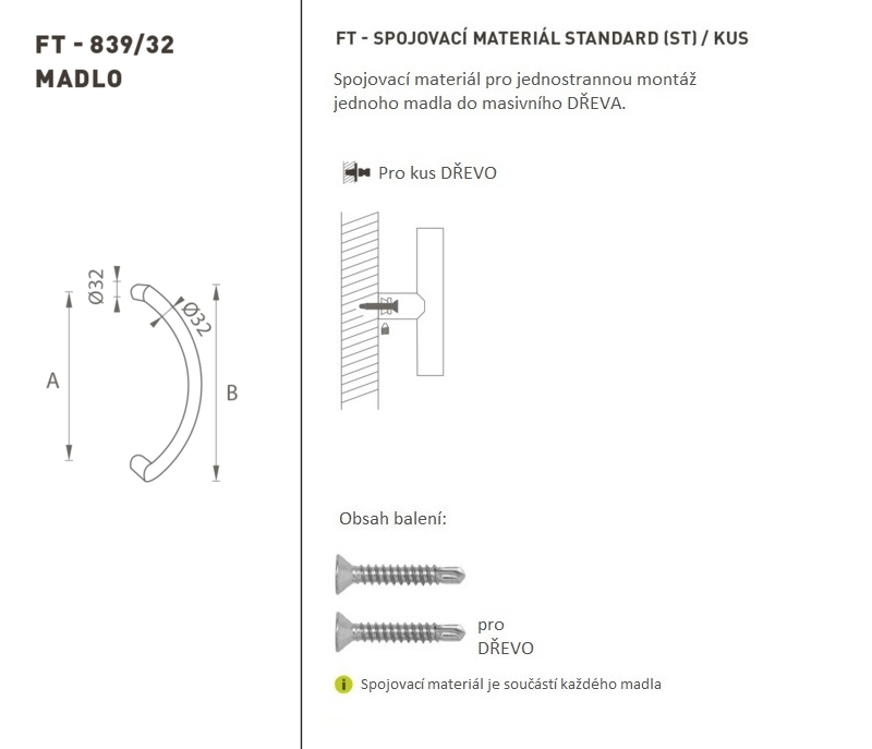 Madlo na dveře je vyrobeno z vysoce kvalitní nerezavějící oceli, známé jako nerez a je povrchově upraveno. Profil madla je 32 mm. Součástí madla jsou vruty 6 x 45 mm.