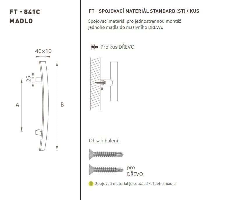 FT - MADLO kód K41C 40x10 mm ST ks BN - Broušená nerez (2/3)