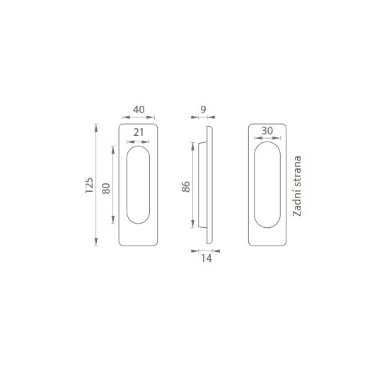 Hranatá mušle bez otvoru je vyrobena z materiálů vysoké kvality - zamak a je povrchově upravena. Mušle má výšku 125 mm, šířku 40 mm, zádlab 9 mm a celkovou tloušťku 14 mm.