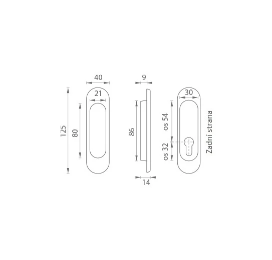 FT - Mušle ovál PZ / D - 3665AZ ANT - Antracit - PZ otvor pro vložku (4/4)