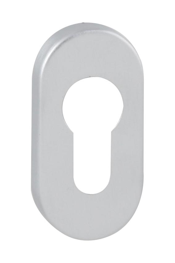 Oválná rozeta s PZ otvorem pro cylindrickou vložku (FAB-ku) s rozměrem 60 x 30 mm. Vhodná na úzké profily dveří.