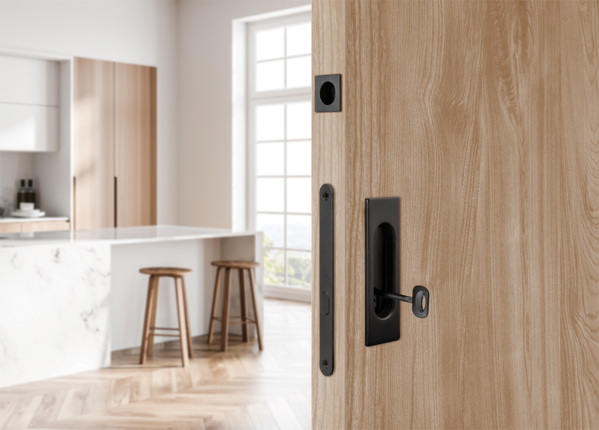Hranatý set na posuvné dveře s otvorem pro interiérový klíč (BB).