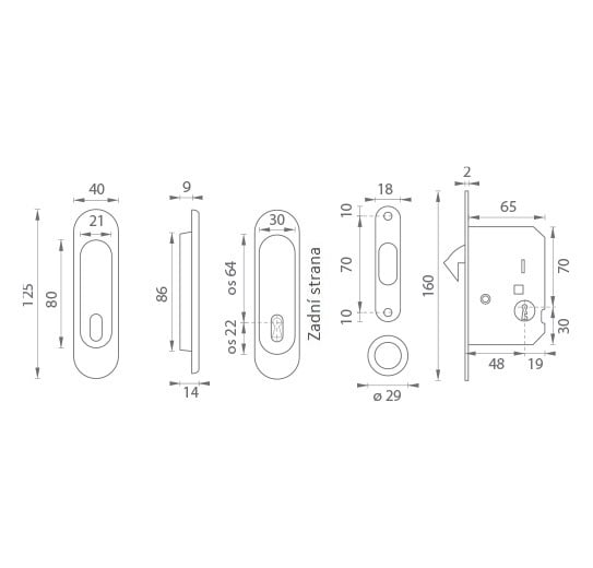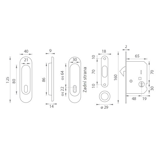 Kulatý set na posuvné dveře s otvorem pro interiérový klíč (BB).