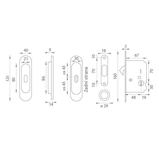 Kulatý set na posuvné dveře s otvorem pro interiérový klíč (BB).