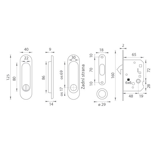 FT - Set na posuvné dveře oválný - WC OC - Chrom lesklý (2/4)