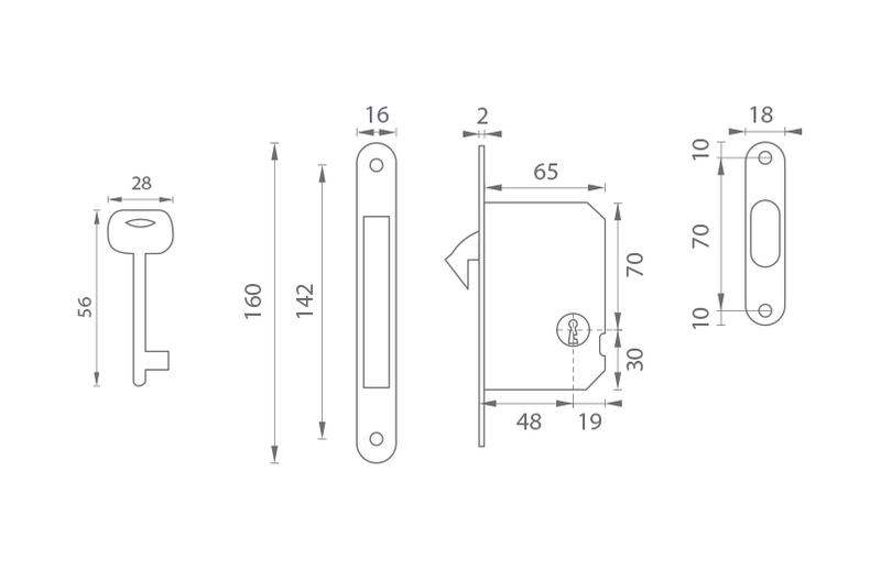 Zámek na posuvné dveře s otvorem pro interiérový klíč (BB).