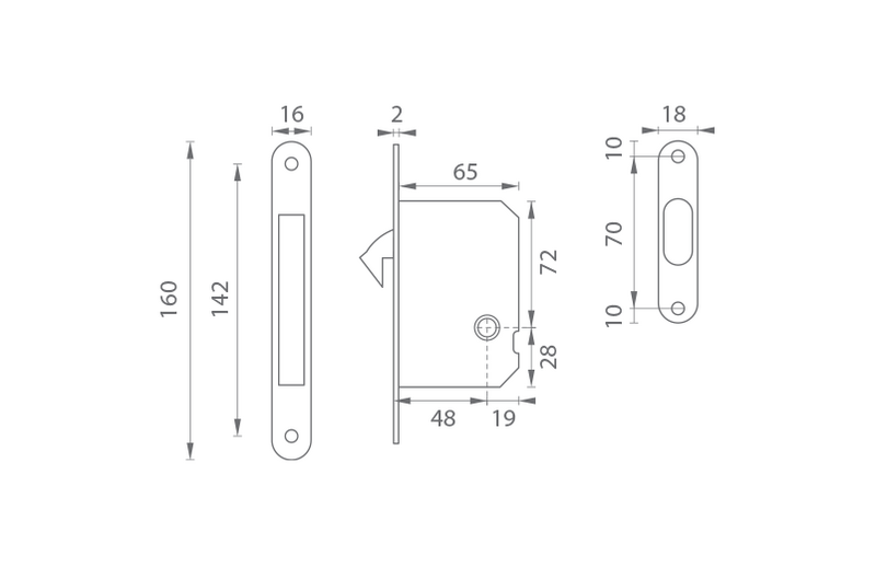Zámek na posuvné dveře s otvorem pro WC klíč.