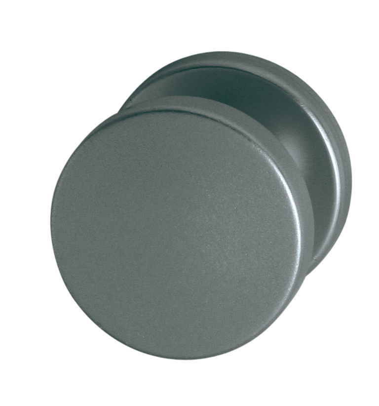Dveřní pevná přímá koule na kulaté rozetě je vyrobena z hliníku a je povrchově upravena. Koule má průměr 46 mm a kulatá rozeta má průměr 50 mm a tloušťku 8 mm.