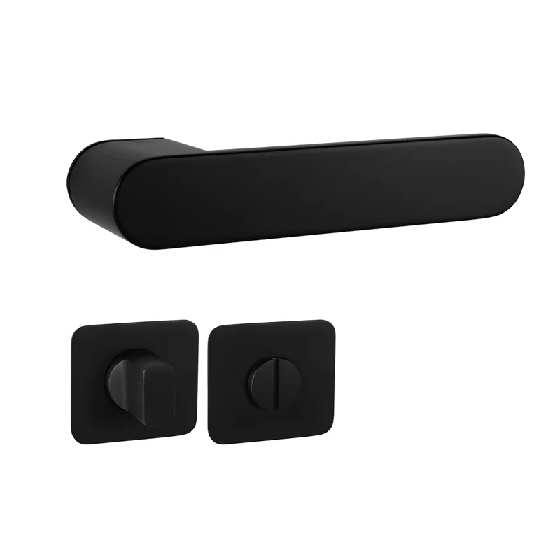 Rozetová klika na interiérové dveře s obdélníkovou rozetou je vyrobena z materiálů vysoké kvality - zamak a je povrchově upravena. Spodní rozeta má rozměry 48 mm x 44 mm a tloušťku 2 mm. Samotná rozeta je součástí designu kliky.