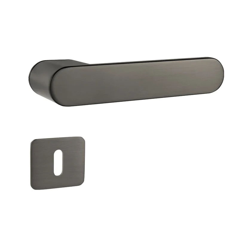 Rozetová klika na interiérové dveře s obdélníkovou rozetou je vyrobena z materiálů vysoké kvality - zamak a je povrchově upravena. Spodní rozeta má rozměry 48 mm x 44 mm a tloušťku 2 mm. Samotná rozeta je součástí designu kliky.