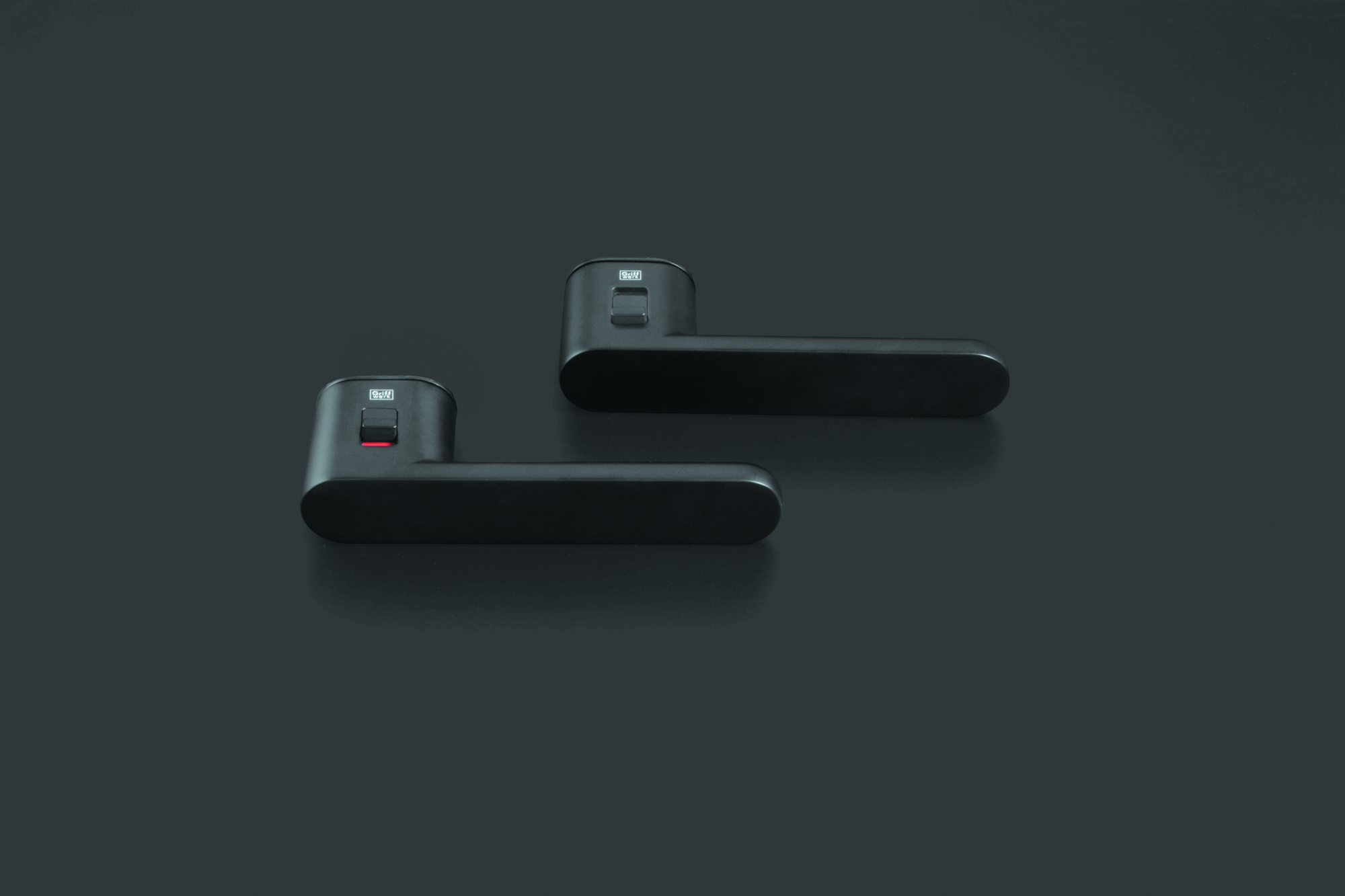 Klika ze série Smart2lock má integrovanou inteligentní technologii uzamykání přímo v klice, takže není potřeba rozety s mechanickým klíčem.