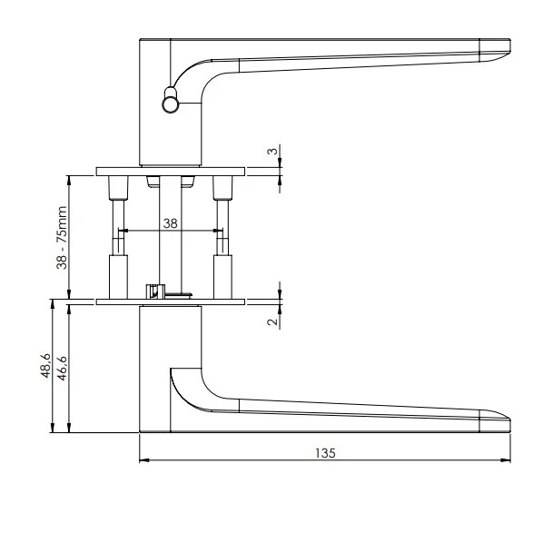 Mechanismus kliky obsahuje vratnou pružinu. Výstupky na rozetě zabraňují jejímu protáčení a šrouby na prošroubování přes celou šířku dveří zaručí pevnější a stabilnější uchycení kování.