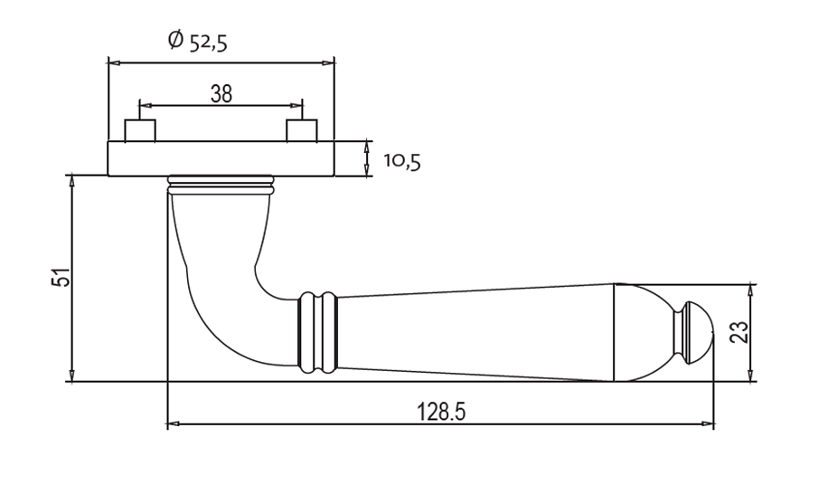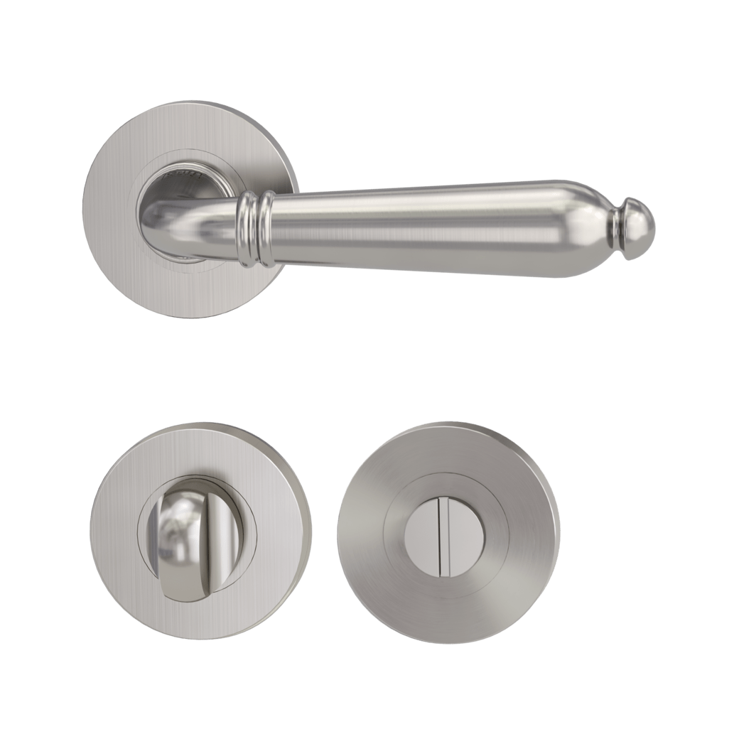 Rozetová klika na dveře CAROLA s kulatou rozetou je vyrobená z kvalitní nerezavějící oceli. Kulatá rozeta má průměr 52,5 mm a tloušťku 10,5 mm.