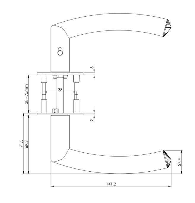 Pro tloušťku dveří nad 45 mm je potřeba doobjednat prodlužovací sadu (obsahuje šrouby a čtyřhran).