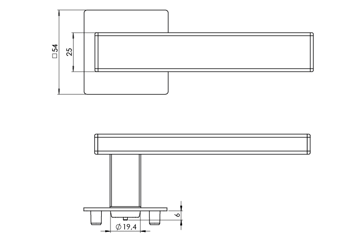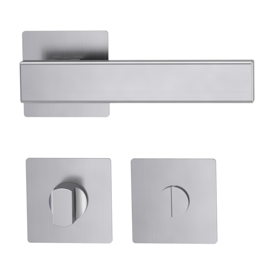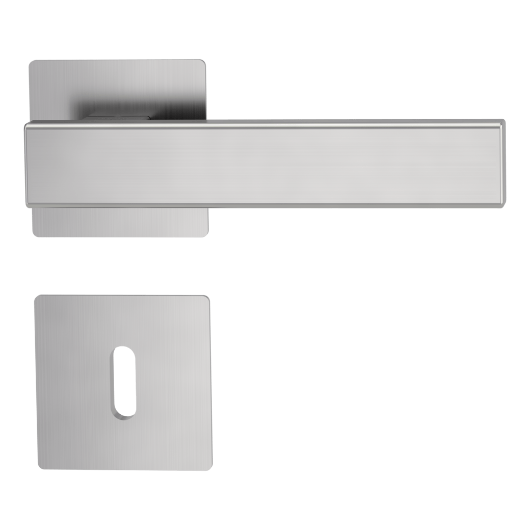 Rozetová klika na interiérové dveře s hranatou rozetou je vyrobena z vysoce kvalitní nerezavějící oceli, známé jako nerez a je povrchově upravena. Rozeta má rozměry 54 mm x 54 mm a tloušťku 2 mm.