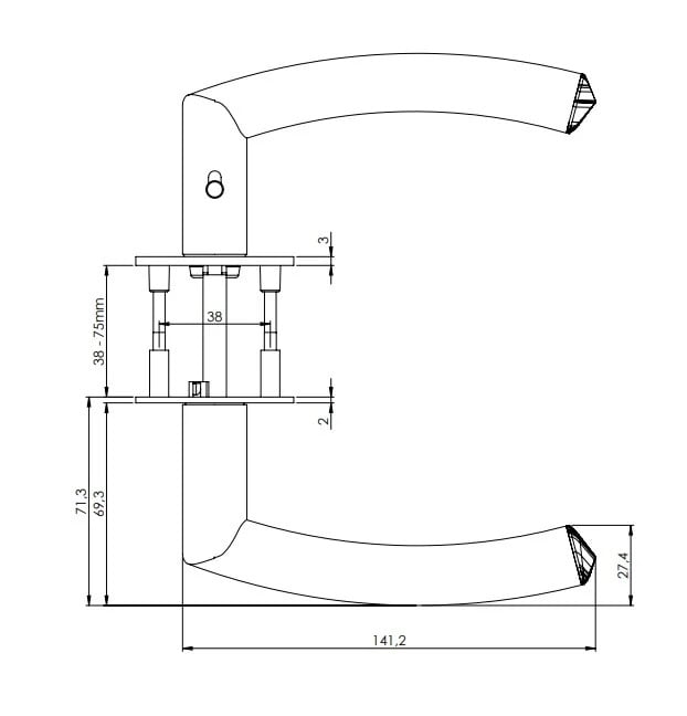 Pro tloušťku dveří nad 45 mm je potřeba doobjednat prodlužovací sadu (obsahuje šrouby a čtyřhran).