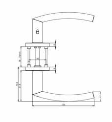 Mechanismus kliky obsahuje vratnou pružinu. Výstupky na rozetě zabraňují jejímu protáčení a šrouby na prošroubování přes celou šířku dveří zaručí pevnější a stabilnější uchycení kování.