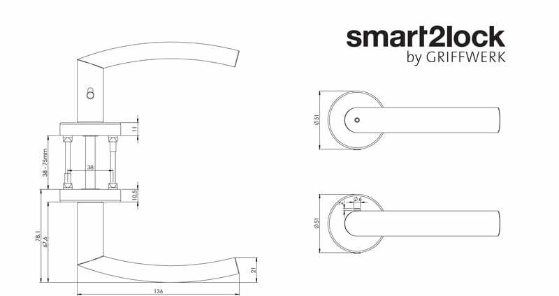 Klika ze série Smart2lock má integrovanou inteligentní technologii uzamykání přímo v klice, takže nejsou potřeba rozety s mechanickým klíčem.