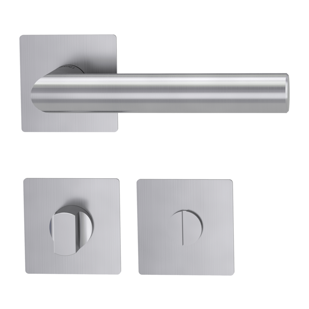 Rozetová klika na interiérové dveře s hranatou rozetou je vyrobena z vysoce kvalitní nerezavějící oceli, známé jako nerez a je povrchově upravena. Rozeta má rozměry 54 mm x 54 mm a tloušťku 2 mm.