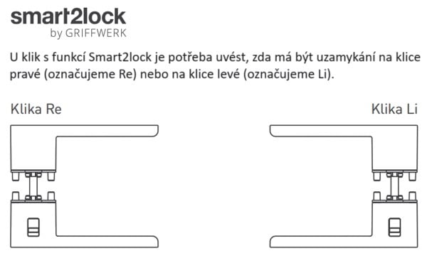 U klik s funkcí Smart2lock je potřeba uvést, zda má být uzamykání na klice pravé (označujeme Re) nebo na klice levé (označujeme Li).