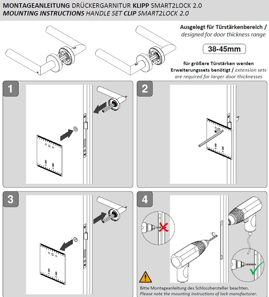 Standardně je kování dodáváno se šrouby a čtyřhranem (8x8 mm) pro tloušťku dveří od 38 do 45 mm.