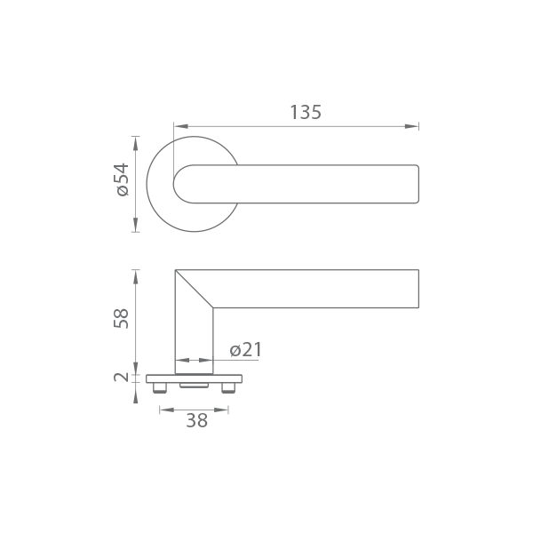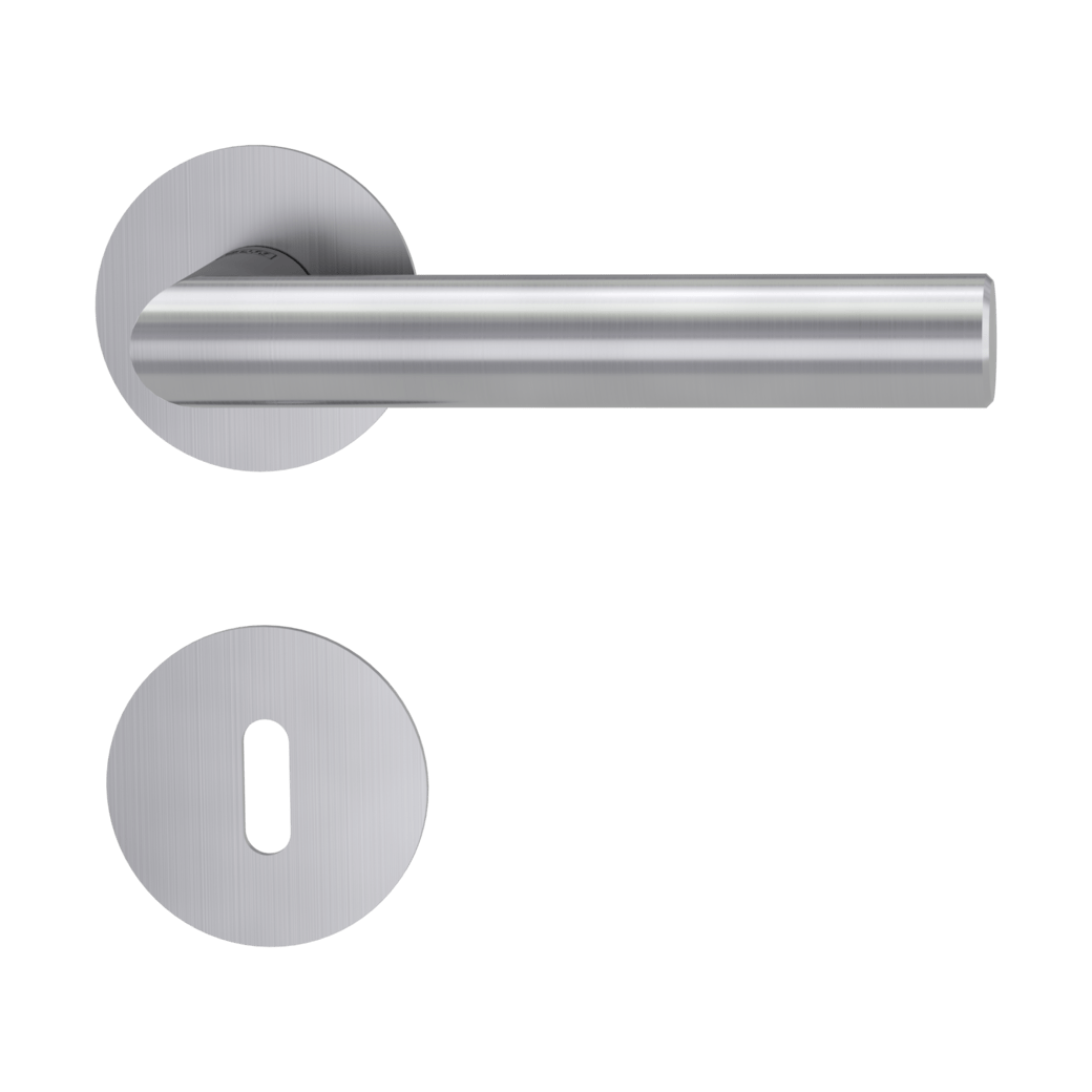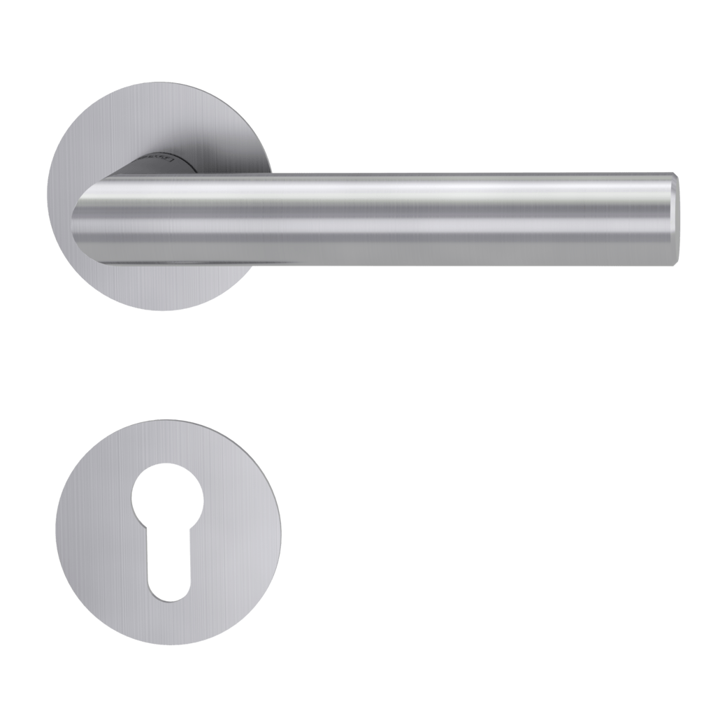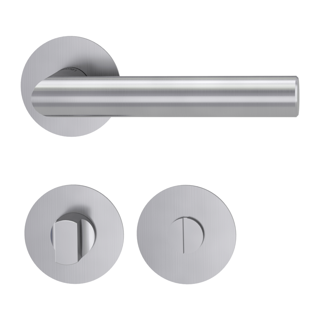 Rozetová klika na interiérové ​​dveře s kulatou rozetou je vyrobena z vysoce kvalitní nerezavějící oceli, známé jako nerez a je povrchově upravena. Rozeta má průměr 54 mm a tloušťku 2 mm.