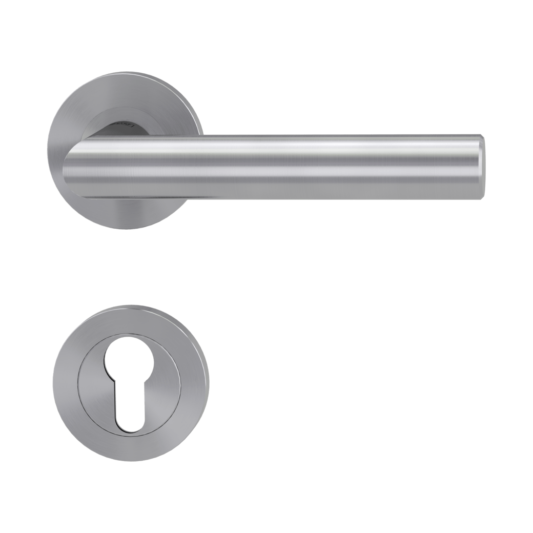 Rozetová klika na interiérové dveře s kulatou rozetou je vyrobena z vysoce kvalitní nerezavějící oceli, známé jako nerez a je povrchově upravena. Rozeta má průměr 53 mm a tloušťku 8 mm.