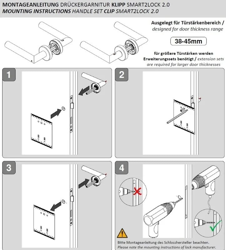 Standardně je kování dodávané se šrouby a čtyřhranem (8 x 8 mm) pro tloušťku dveří 38 - 45 mm.