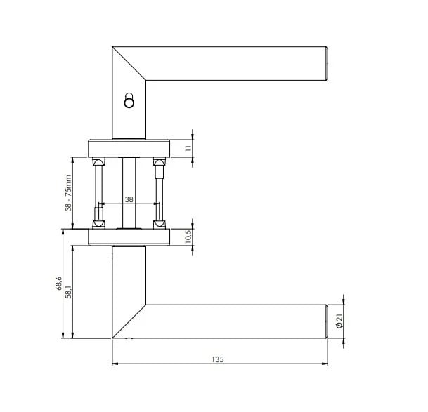 Standardně je kování dodávané se šrouby a čtyřhranem (8 x 8 mm) pro tloušťku dveří 38 - 45 mm.