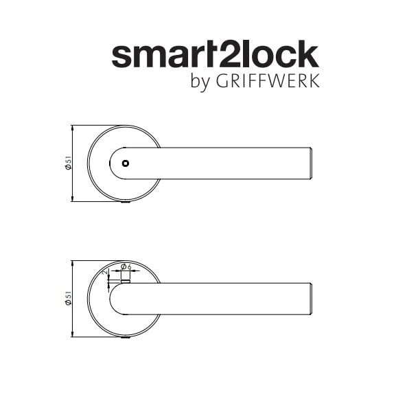 Klika ze série Smart2lock má integrovanou inteligentní technologii uzamykání přímo v klice, takže nejsou potřeba rozety s mechanickým klíčem.
