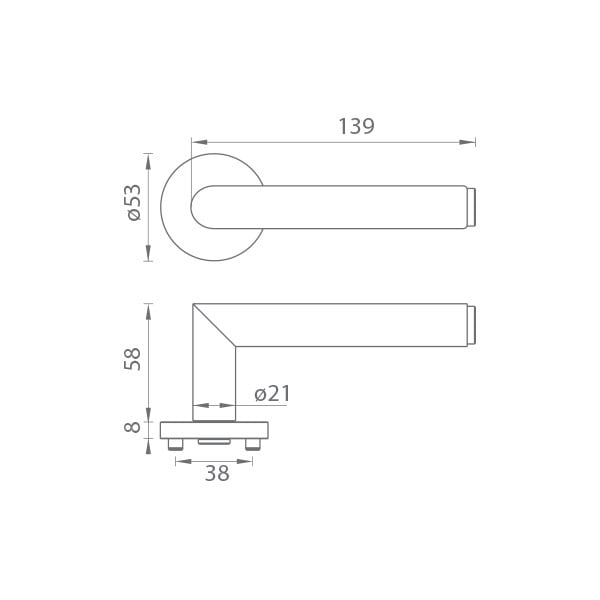 Rozetová klika na interiérové ​​dveře s kulatou rozetou je vyrobena z materiálů vysoké kvality - zamak a je povrchově upravena. Rozeta má průměr 53 mm a tloušťku 8 mm.