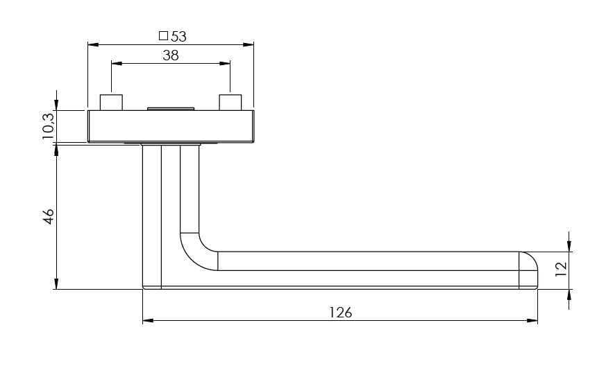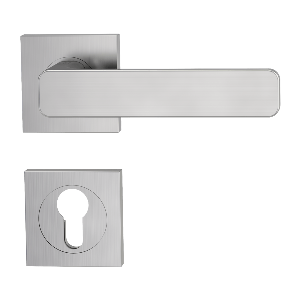 Rozetová klika na dveře MINIMAL MODERN s hranatou rozetou je vyrobená z kvalitní nerezavějící oceli. Hranatá rozeta má rozměr 53 x 53 mm a tloušťku 10,5 mm.