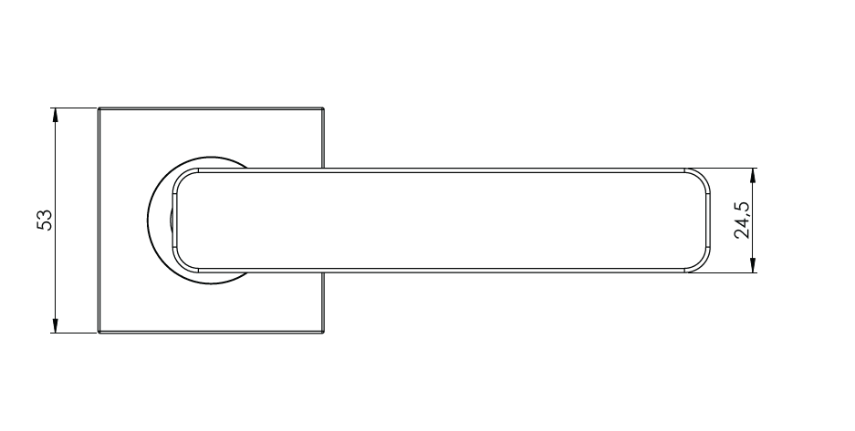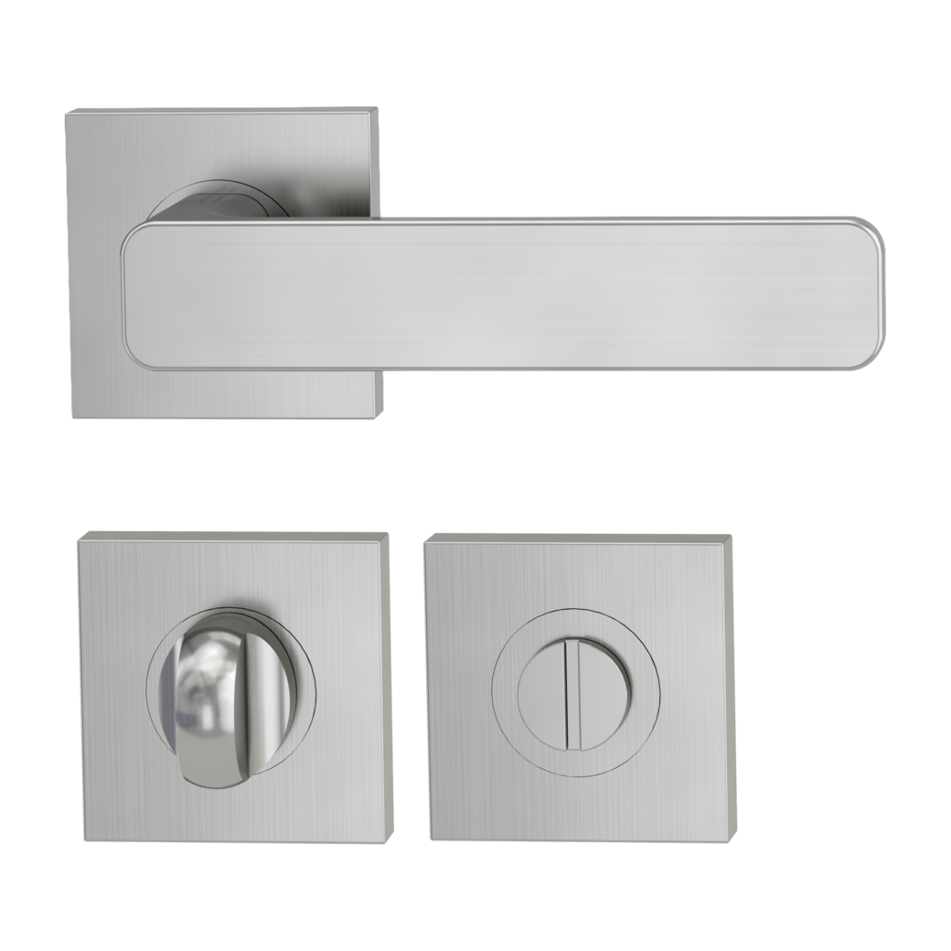 Rozetová klika na dveře MINIMAL MODERN s hranatou rozetou je vyrobená z kvalitní nerezavějící oceli. Hranatá rozeta má rozměr 53 x 53 mm a tloušťku 10,5 mm.