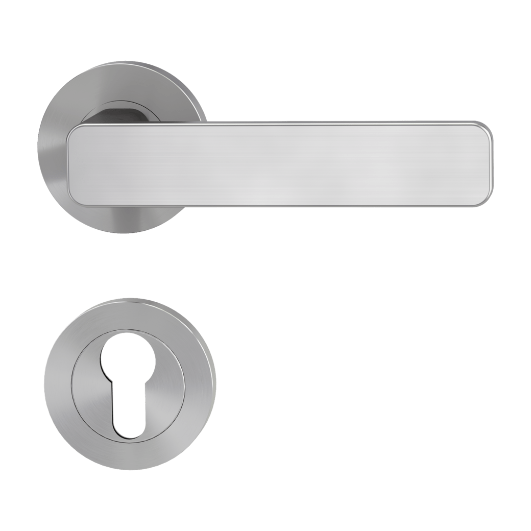 Rozetová klika na dveře MINIMAL MODERN s kulatou rozetou je vyrobená z kvalitní nerezavějící oceli. Kulatá rozeta má průměr 53 mm a tloušťku 10,5 mm.