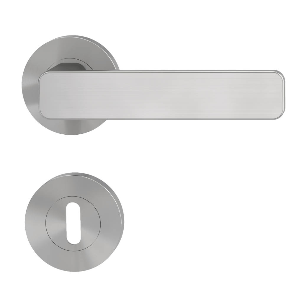 Rozetová klika na dveře MINIMAL MODERN s kulatou rozetou je vyrobená z kvalitní nerezavějící oceli. Kulatá rozeta má průměr 53 mm a tloušťku 10,5 mm.