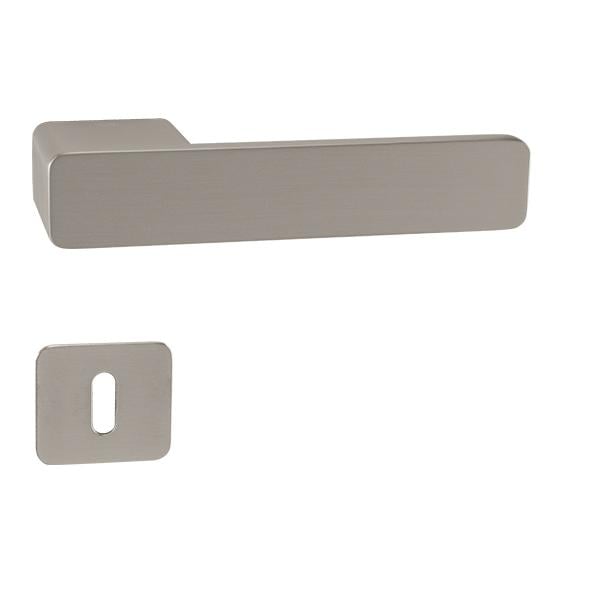Rozetová klika na interiérové dveře s obdélníkovou rozetou je vyrobena z materiálů vysoké kvality - zamak a je povrchově upravena. Spodní rozeta má rozměry 48 mm x 44 mm a tloušťku 2 mm. Samotná rozeta je součástí designu kliky.