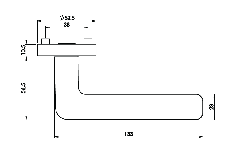 Rozetová klika na dveře REMOTE s kulatou rozetou je vyrobená z kvalitní nerezavějící oceli. Kulatá rozeta má průměr 52,5 mm a tloušťku 10,5 mm.