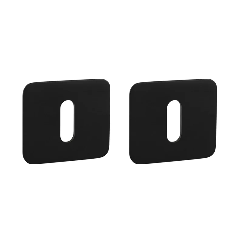 Rozeta má rozměry 48 mm x 44 mm, tloušťku 2 mm a oválný otvor pro interiérový klíč (BB), otvor pro cylindrickou vložku (PZ) anebo WC set s vmontovaným klíčem.