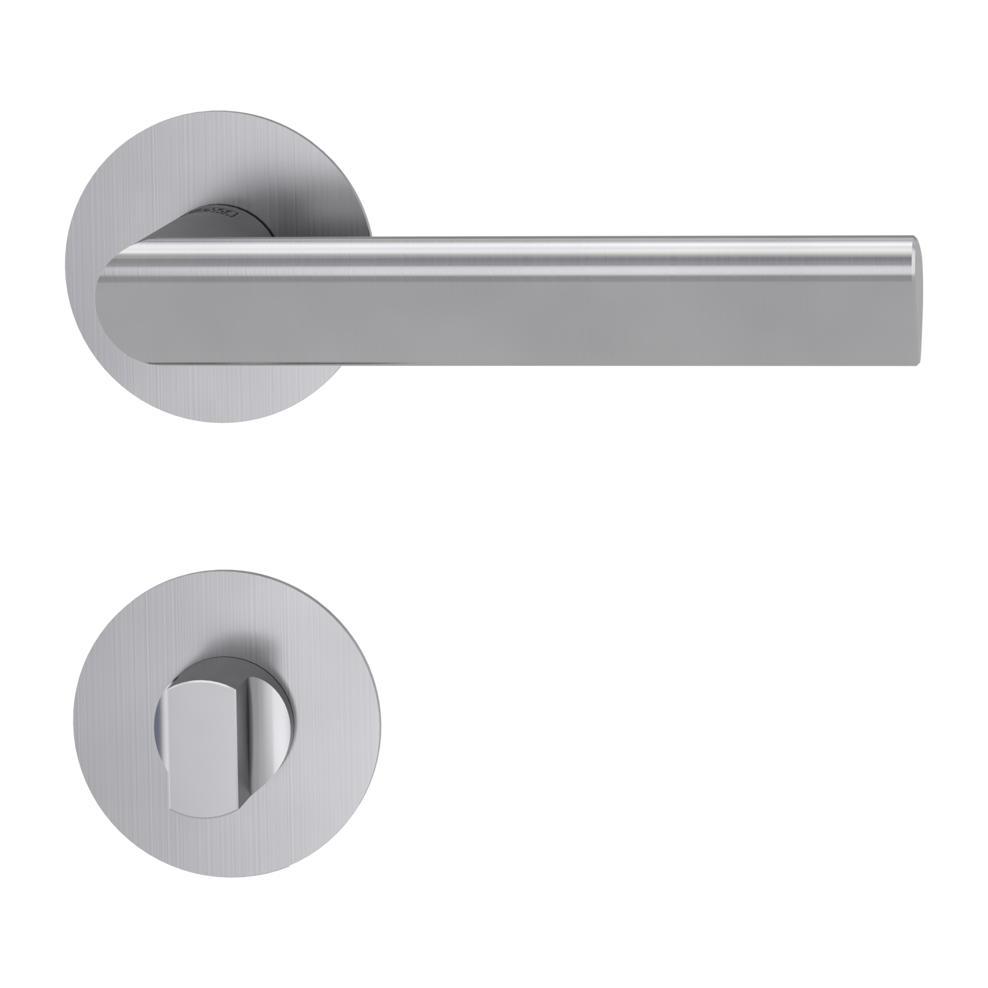 Rozetová klika TRI 134 PIATTA S na interiérové dveře s kulatou rozetou je vyrobena z vysoce kvalitní nerezavějící oceli, známé jako nerez a je povrchově upravena. Rozeta má průměr 54 mm a tloušťku 2 mm.