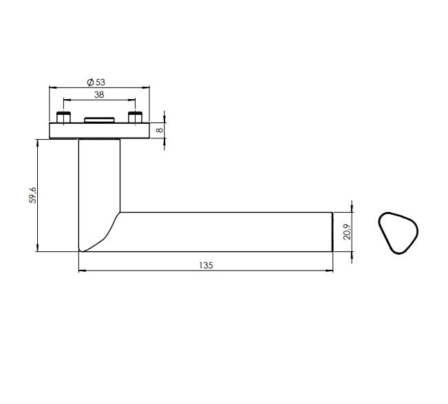 Rozetová klika na interiérové dveře s kulatou rozetou je vyrobená z vysoce kvalitní nerezavějící oceli, známé jako nerez a je povrchově upravená. Rozeta má průměr 53 mm a tloušťku 8 mm.