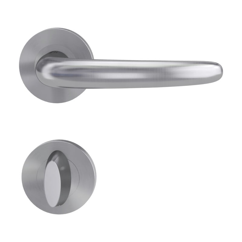 Rozetová klika na interiérové ​​dveře s kulatou rozetou je vyrobena z vysoce kvalitní nerezavějící oceli, známé jako nerez a je povrchově upravena. Klika je výjimečná svým nadčasovým designem a vysokou kvalitou.