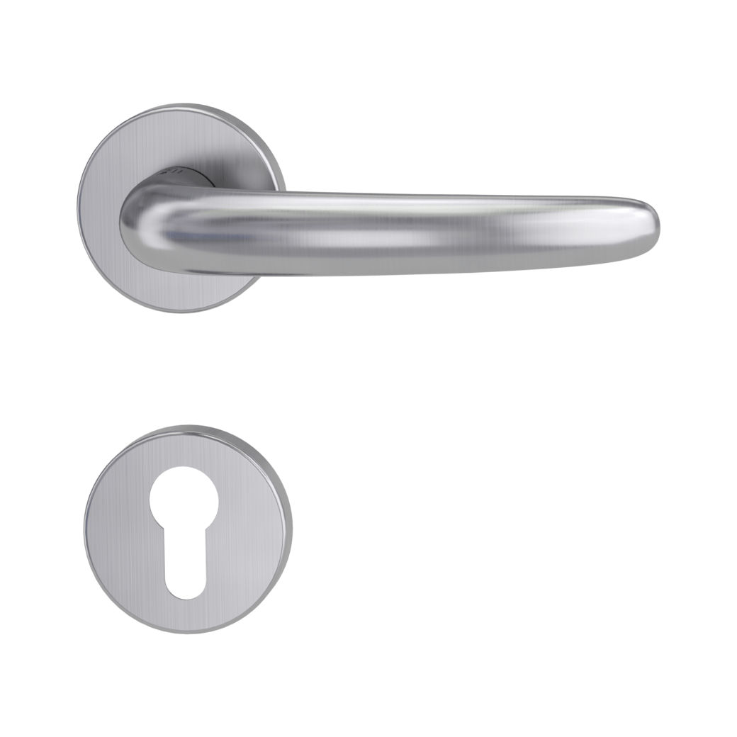 Rozetová klika na interiérové ​​dveře s kulatou rozetou je vyrobena z vysoce kvalitní nerezavějící oceli, známé jako nerez a je povrchově upravena. Klika je výjimečná svým nadčasovým designem a vysokou kvalitou.