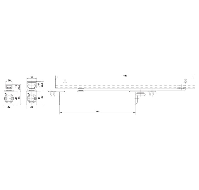 Síla zavírání velikosti 5 dle ČSN EN 1154 - je pro šířku dveřního křídla od 1 100 mm do 1 250 mm