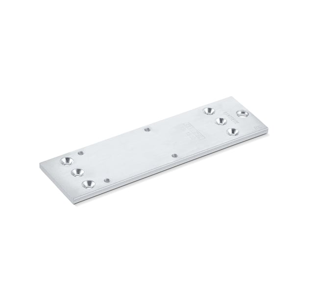 Montážní podložka k samozavírači GEZE TS 1500. Používá se pro dveře bez možného přímého upevnění samozavírače (např. Dveře s falcem). Zabezpečuje pevné ukotvení zavírače bez viditelných kotvících elementů. U požárních a dýmotěsných dveří je nutná.