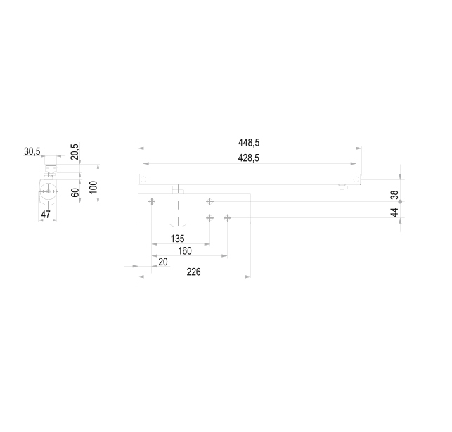 V případech, kdy není možné samozavírač připevnit na křídlo dveří doporučujeme použít montážní podložku.