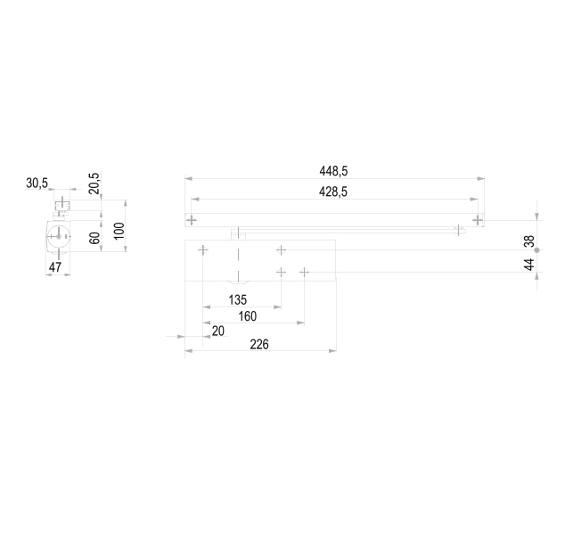 Doporučená váha dveřního křídla dle ČSN EN 1154 je pro tento samozavírač 80 kg.