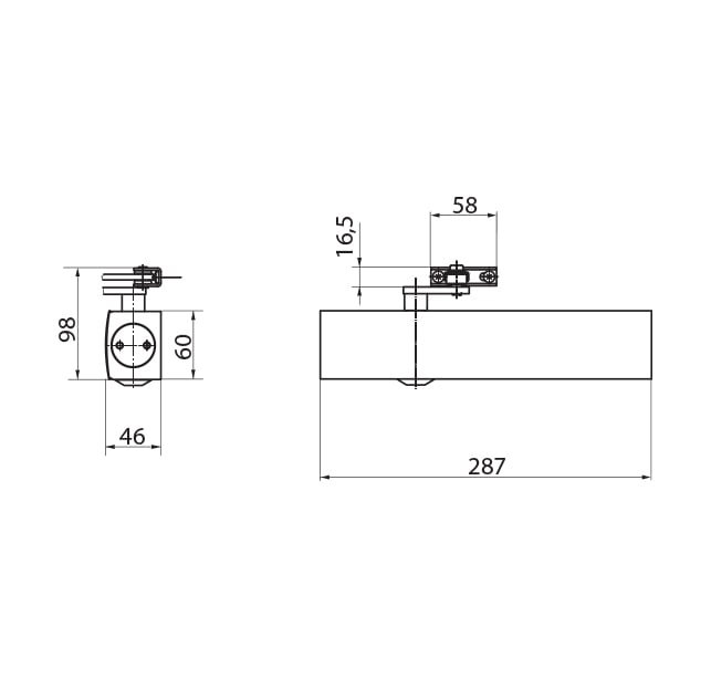 • Způsob montáže - na dveřním křídle na straně pantů / proti pantům nebo na rám na straně proti pantům