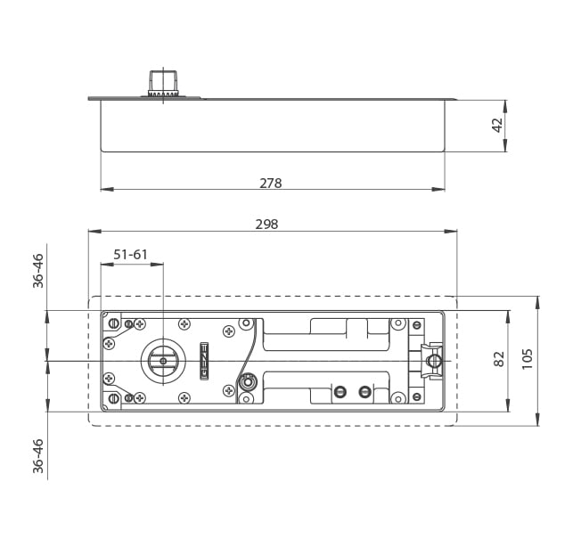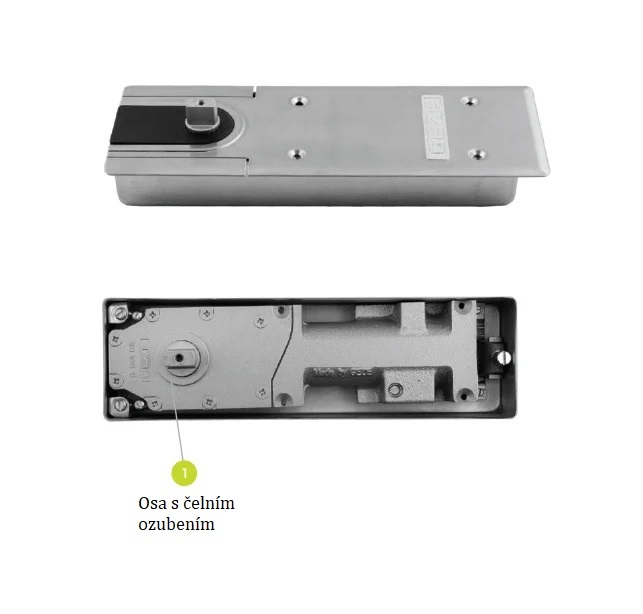 Podlahový samozavírač GEZE - TS 500 EN 3 má možnost nastavení rychlosti zavírání dveří a hydraulického koncového dorazu při zavírání. Také nastavení polohy trvalého otevření - 80 ° - 90 ° - 105 ° - 120 ° a fixní tlumení otevírání.
