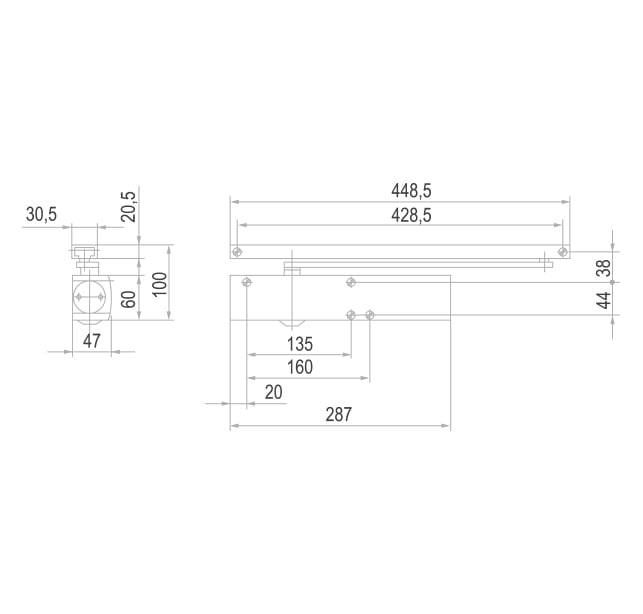 Síla zavírání velikosti 3 dle ČSN EN 1154 - je pro šířku dveřního křídla od 850 mm do 950 mm